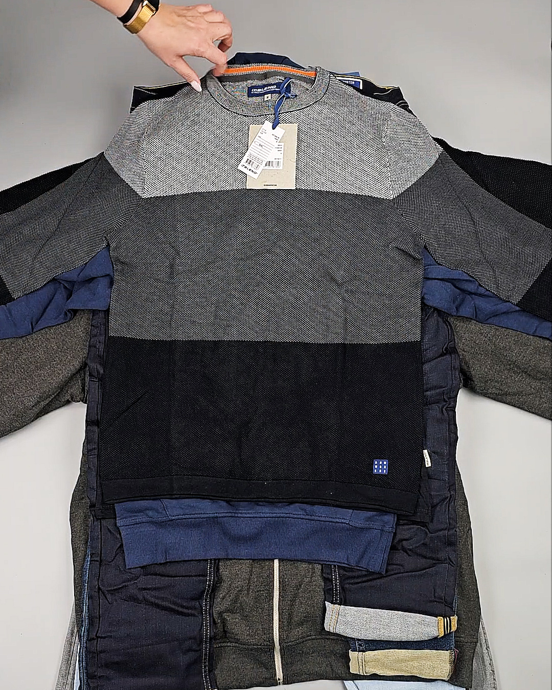 В мешке представлен мужской ассортимент - это продукция актуальных европейских брендов высокого качества. Отлично подойдет для закупки если целевым сезоном продаж является зима.